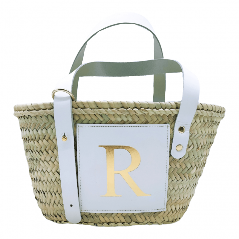 Small handmade palm straw basket, personalized to your liking including the initial of your choice.