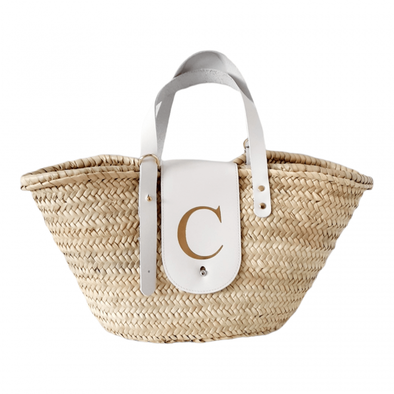 Medium straw basket handmade, personalized to your liking including the initial you desire.