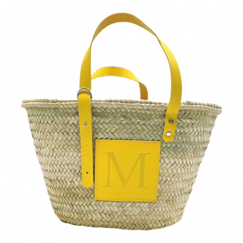Medium Ibiza straw basket handmade to your liking, including your desired initial.